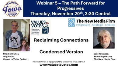 The webinar included materials from Will Robinson on key roles grassroots advocates and organizations can play in reclaiming connections with persuadable votes.
