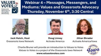 This webinar emphasized the multiple roles that grassroots organizations can play and the different messages, messengers, and mediums in which grassroots advocacy can be effective. This included an overview of the different messengers who can be effective in delivering different messages and in different ways provided by Values to Votes. Doug Linney from Activate America then described how to recruit, retain, and grow leaders as a part of grassroots organizing.