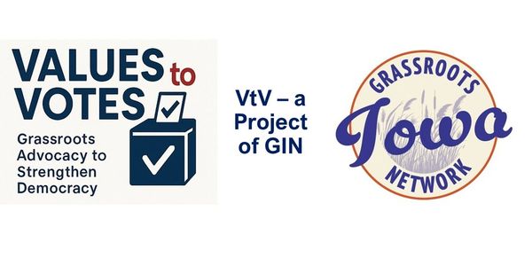 Values to Votes is a project of the Grassroots Iowa Network (GIN), itself directed to showcasing and supporting the efforts in Iowa of grassroots champions. GIN is committed to creating new dialogues about Iowa’s future and government’s role ensuring all children, families, and communities have opportunities to fulfill their dreams.